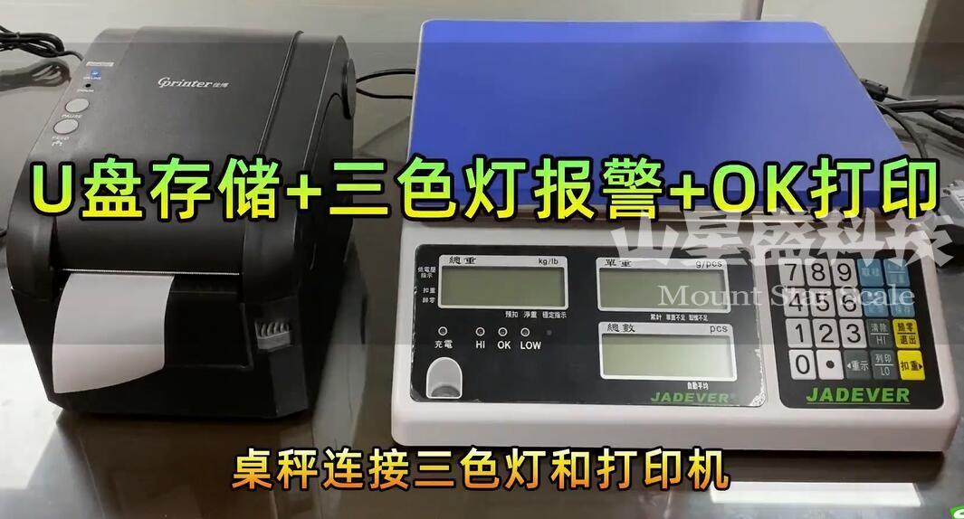 電子計數秤配備三色報警燈、打印機及U盤(手把手操作視頻點播放鍵查看)