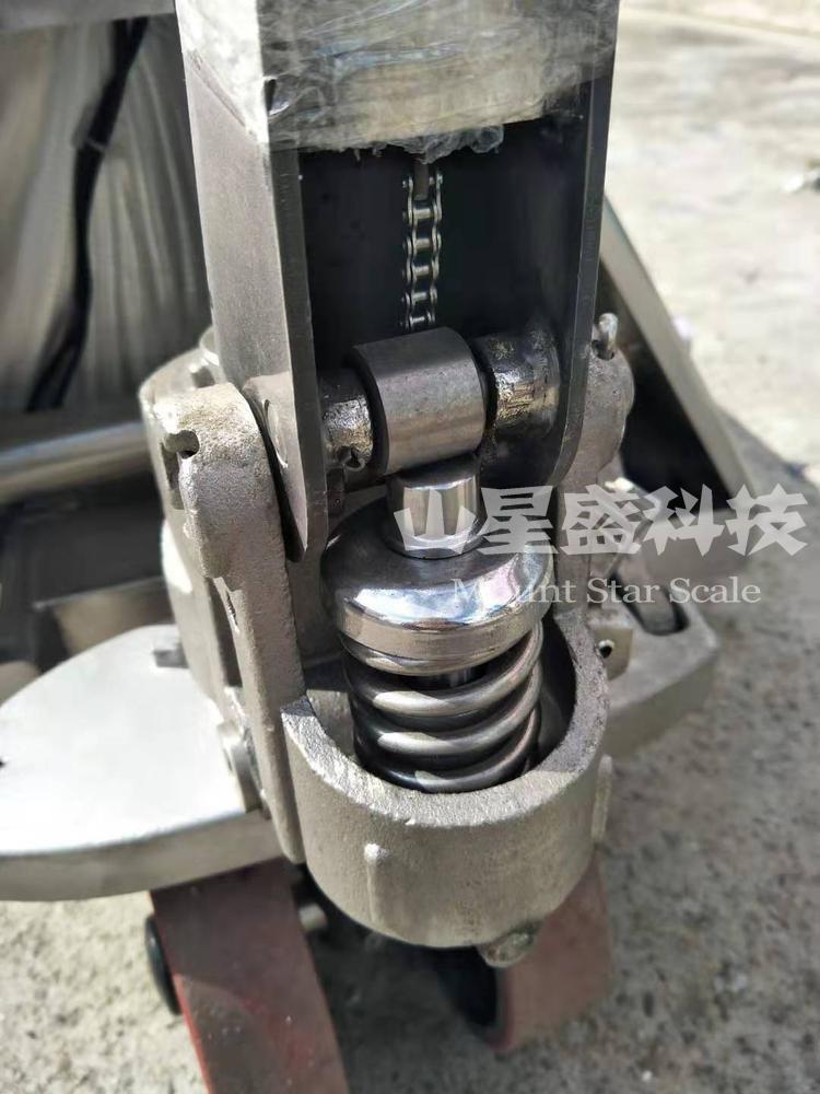 304不銹鋼防腐叉車手拖電子秤 倉儲化工油漆廠行業(yè)液壓地牛手拉電子稱